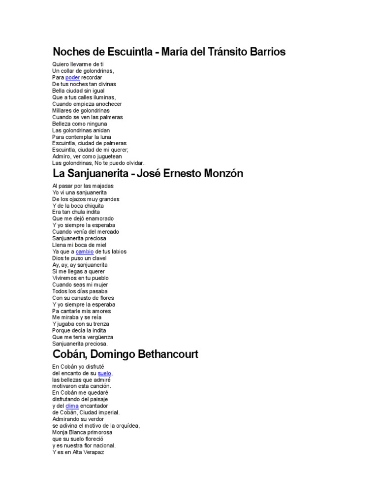 10 Letras De Canciones En Marimba 1430jypd2g4j - Letra de escucha las golondrinas.