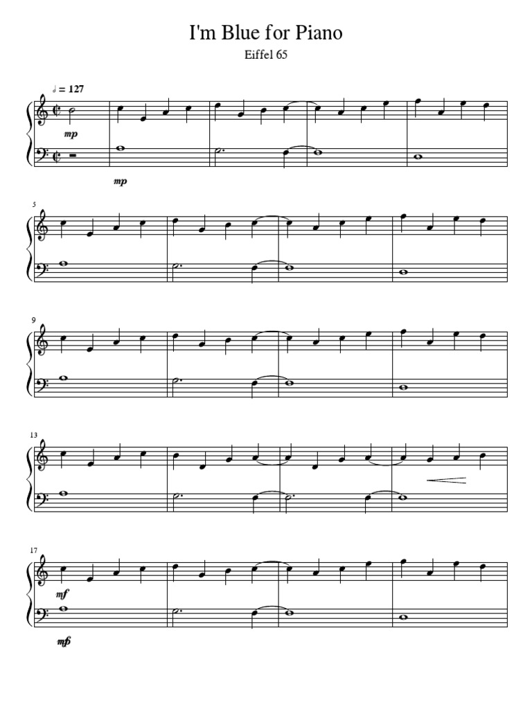 Eiffel 65 Blue Sheet Music Epic Sheet Music - Imblue eiffel65 blue piano arrangement firstscore thepurplejackalope pop rock good popular.