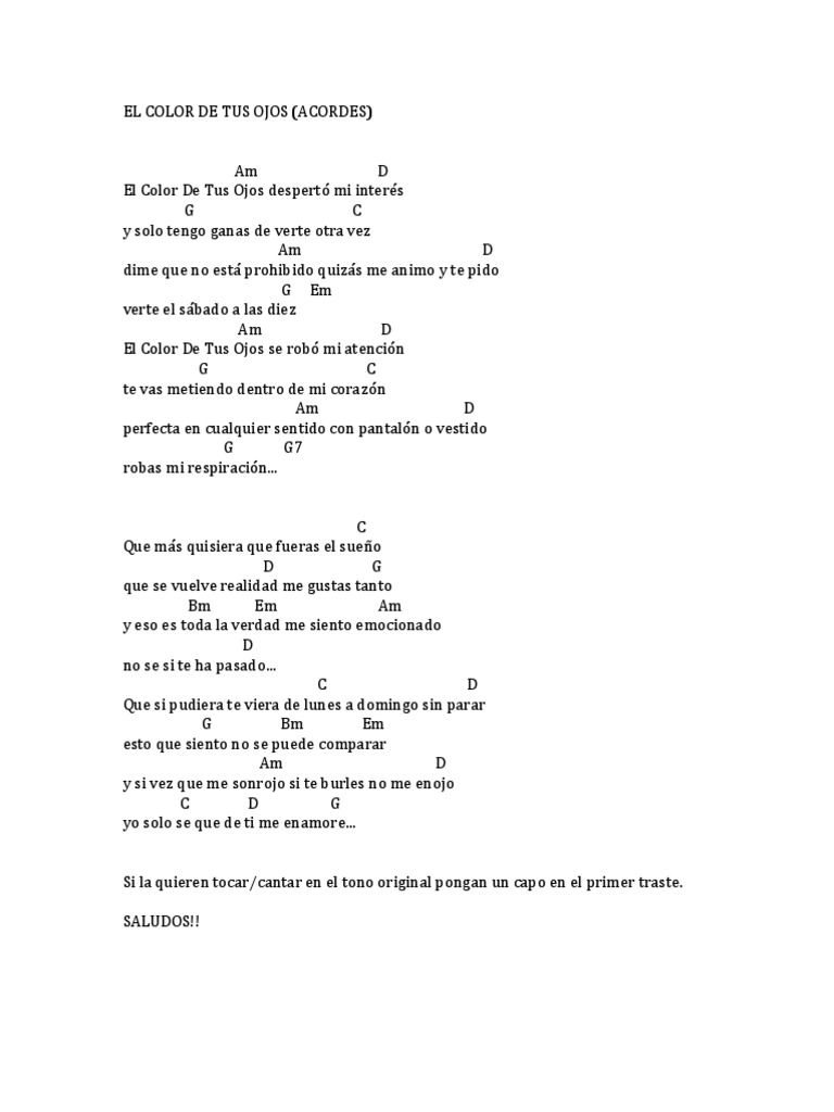 El Color De Tus Ojos Tab - Sim re dime que no esta prohibido, quizas me animo y te pido. El Color De Tus Ojos Tab : Am el color de tus ojos.