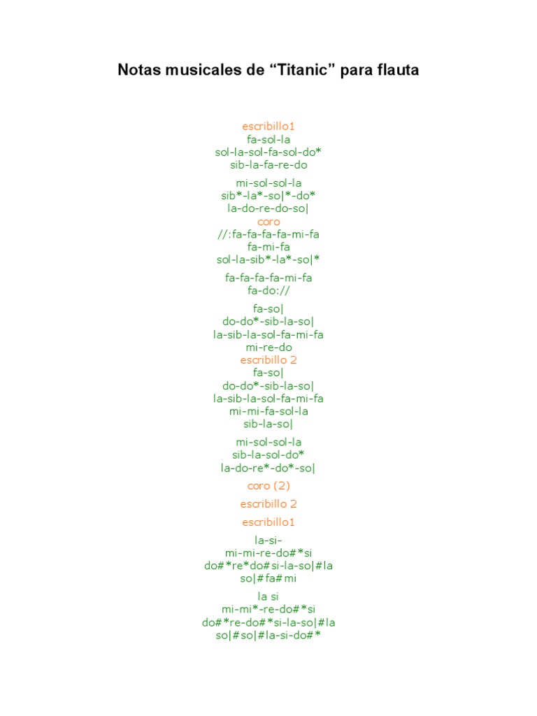 Notas Musicales Para Flauta Titanic / Titanic, flauta dulce facil, tutorial con animacion, easy flute reco. Notas Musicales Para Flauta Titanic - Notas para flauta con a.