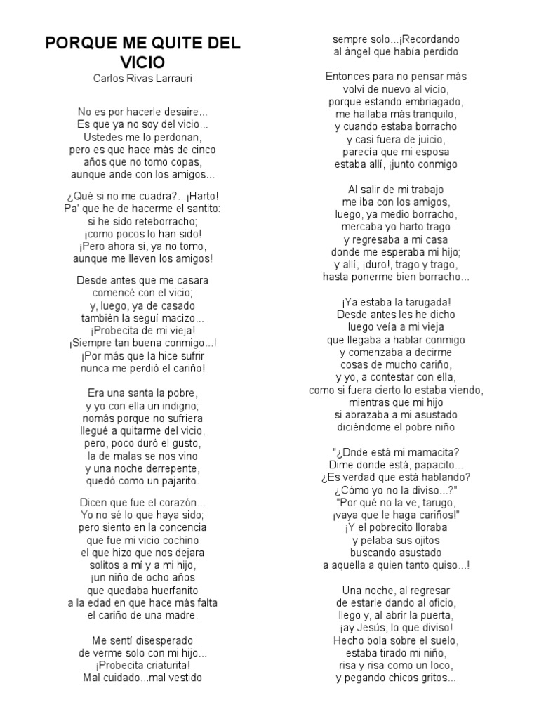 Poema Por Que Me Quite Del Vicio : 6 years ago6 years ago. Poema Por Que Me Quite Del Vicio : Publicado por telma puga en 16:15.