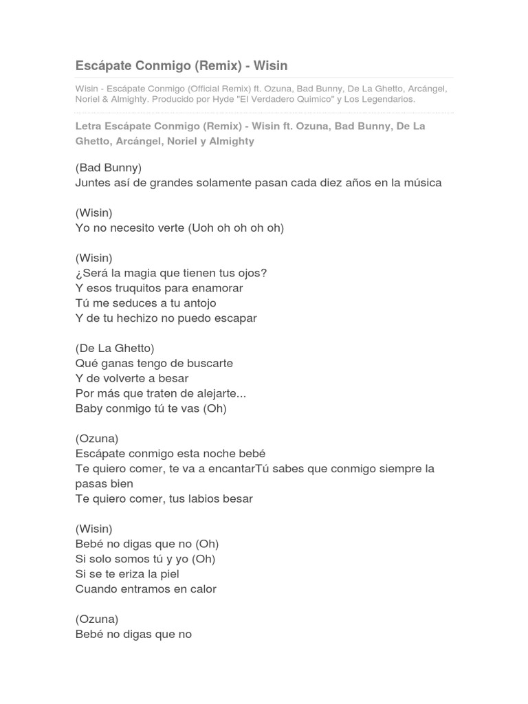 Escapate Conmigo Remix Lyrics English - Te bote english lyrics remix.