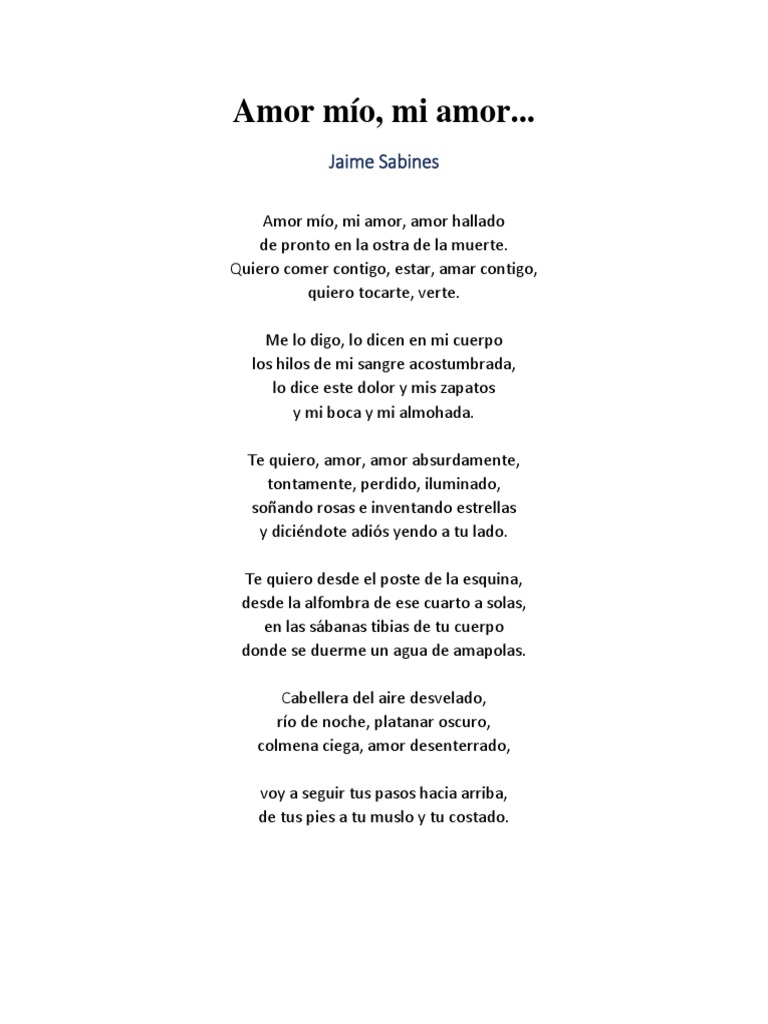 Te Quiero Poema Jaime Sabines / No te falta ni un petalo, ni un olor, ni una sombra. Te Quiero Poema Jaime Sabines : Te quiero con toda mi alma y con todo mi cuerpo, a veces, en las tardes de lluvia.
