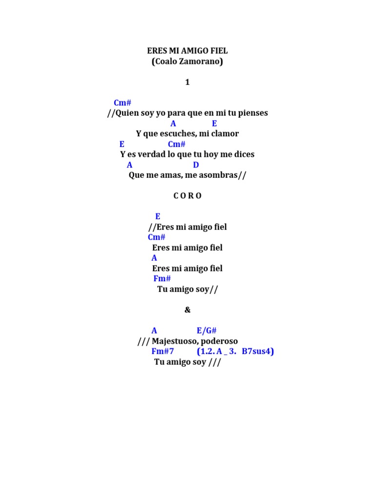 Eres Mi Amigo Fiel - Aprende a tocar el cifrado de eres mi amigo fiel (coalo zamorano) en cifra club.